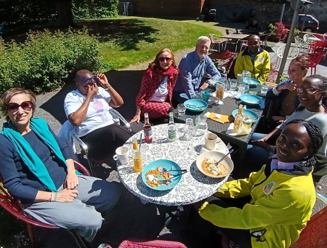 Dank der Initiative von Anna Samodova folgten Mitglieder und neue Interessierte mit unterschiedlichen nationalen und biographischen Hintergünden der Einladung. Schnell stellte sich Englisch als gemeinsame Sprache raus, auch wenn italienisch, spanisch, russisch und deutsch dabei war. Das spannende war, dass wir sowohl Angestellte als auch Arbeitssuchende als auch Freiberufler:innen dabei UND einige, die zwischen diesen verschiedenen Formaten wechseln oder sie kombinieren. Und zwischen den verschiedenen Länden hin und her jetten oder von hier remote arbeiten. Sei es in der Beratung von jungen Frauen in Kenia oder landwirtschaftliche Beratungen in der EU