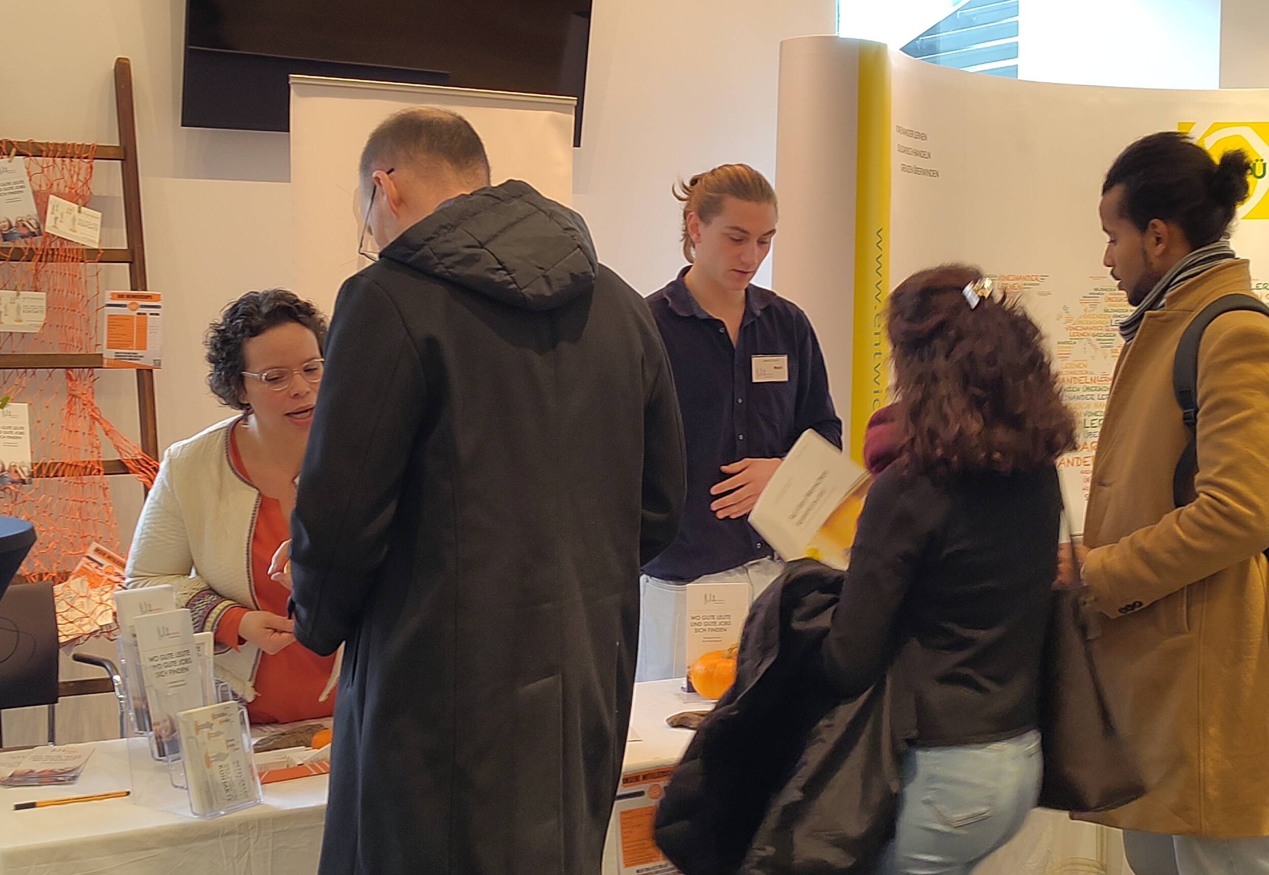In den letzten Jahren haben wir u.a. auch auf der Messe erfahren, um wieviel schwieriger der Jobeinstieg in der Internationalen Zusammenarbeit für Arbeitssuchende mit Flucht- oder Migrationsbiographie ist. Neben aufenthaltsrechtlichen und anderen gibt es auch viele sprachliche Hürden. Deswegen möchten wir hier ein besonderes Augenmerk drauf richten und bieten die Beratungen auch in 5 Sprachen an. Englisch, Deutsch, Spanisch, Französisch und Portugiesisch. Etwas Afrikaans-Kenntnisse sind auch dabei.