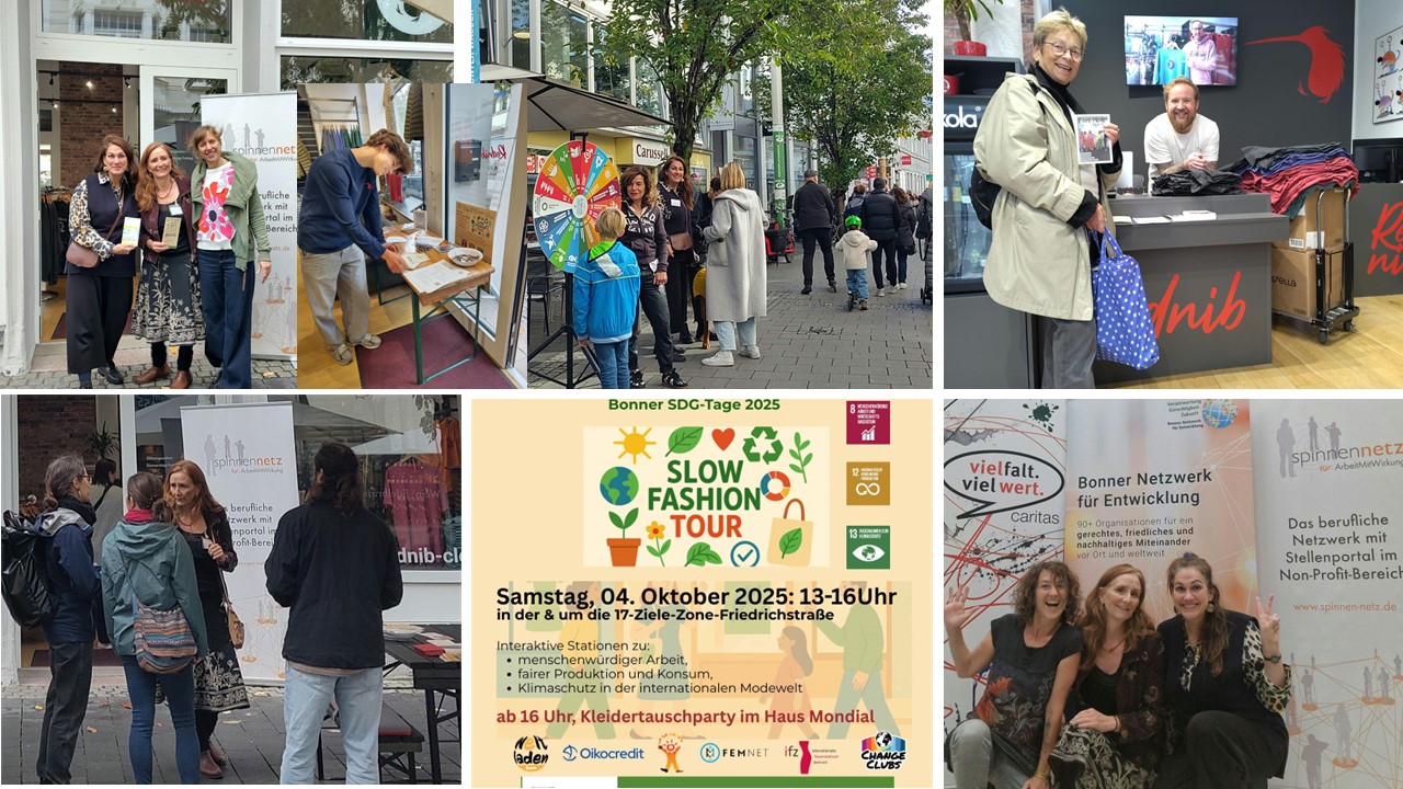Im Rahmen der Bonner #SDG-Tage haben das Bonner Netzwerk für Entwicklung, die Caritas Bonn mit ihrer Kampagne Vielfalt Viel.Wert und das berufliche Netzwerk Spinnen-Netz Arbeit mit Wirkung acht Stationen ausgesucht, um nachhaltige Alternativen zur Wegwerfmode aufzuzeigen. 👗♻️